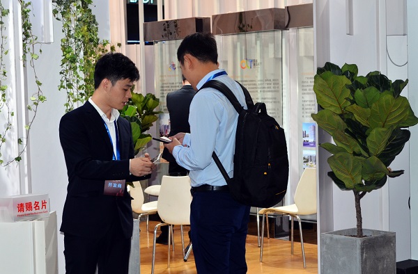 本届博览会参展及参观报名企业多达2686家,东基地产展区成为博览会上的一大亮点:6*6特装展位,采用异型装饰效果,搭配今年流行的白色,以绿植点缀,整个展位别致亮眼,让众多参会人员及参展商流连忘返。