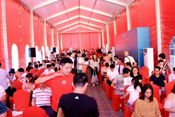 开盘现场,东业世邦物业的安保人员顶着高温,指挥车辆停靠,维持现场秩序;客服人员负责参会嘉宾的服务工作,与客户沟通,了解客户需求;工程人员确保设备设施正常运转。