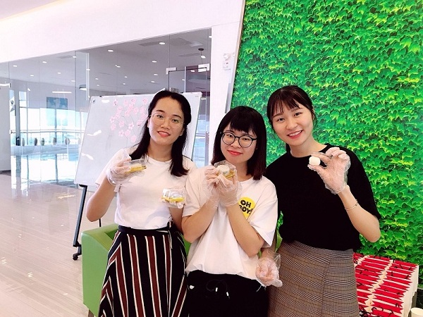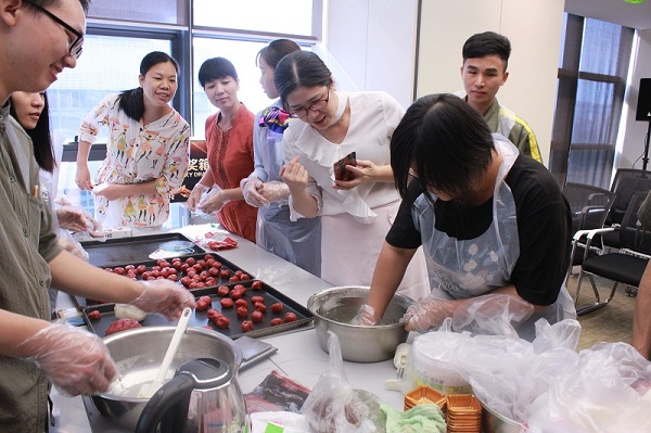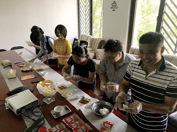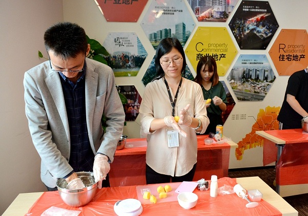 虽然都是第一次动手制作,但大家都做的有模有样,一个个漂亮的月饼相继出炉。寄托着团圆和对家人美好祝福的月饼,也让众人真切感受到团队的力量。