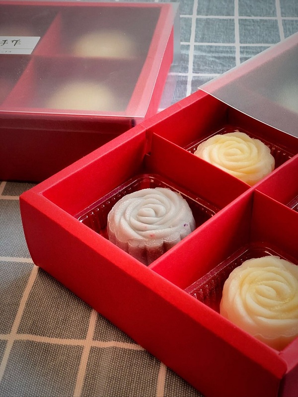 经专业面点师演示和详细讲解后,东基家人就全身心投入到月饼的制作中。“哎,你的冰皮,不能再揉了,不然就太软了”“包馅时,要把冰皮慢慢往上推”“可以多粘一点糕粉,这样就不会粘模具”.......制冰皮、揉馅、包馅、成型,每一个环节大家都积极分享心得、提供建议。
