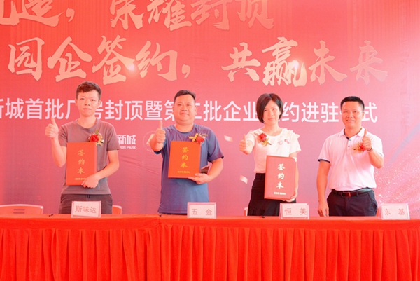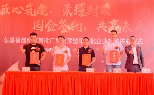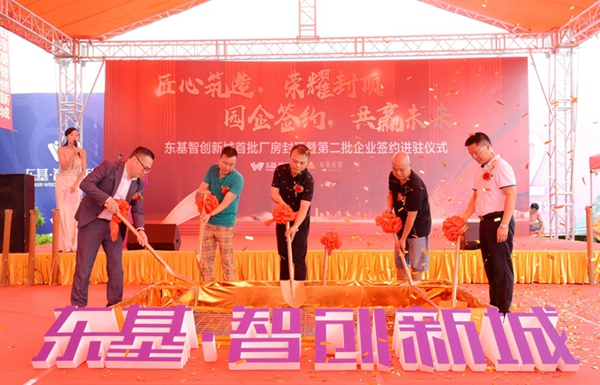匠心筑造,荣耀封顶,园企签约,共赢未来。9月22日,东基智创新城首批厂房封顶暨第二批企业签约进驻仪式在肇庆四会市隆重举行。智创新城项目总经理谢总、招商负责人李总及多家签约进驻企业代表共50余人出席了封顶仪式。